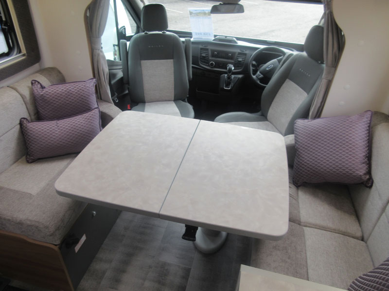Front lounge with swivel cab seats for a sociable living area