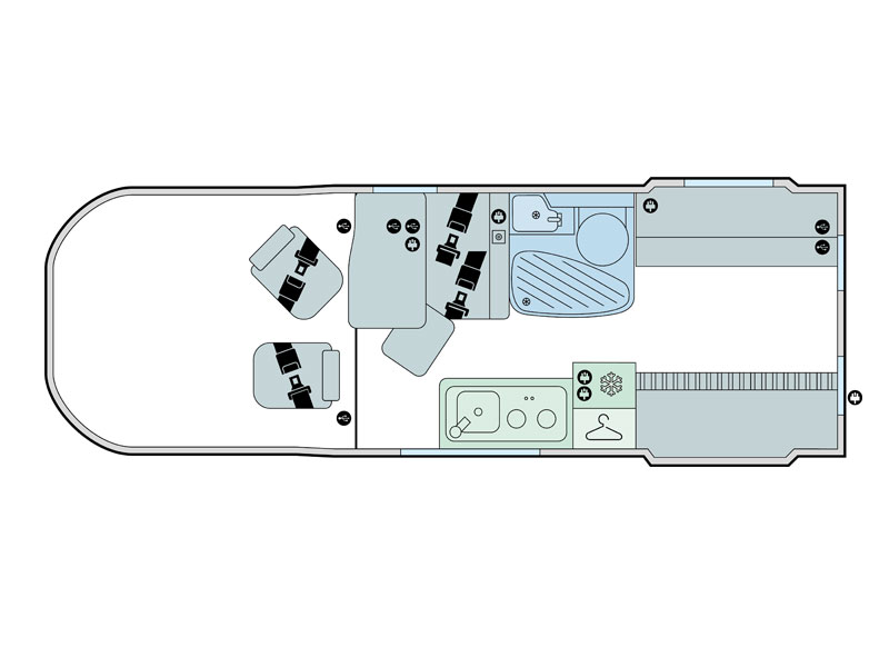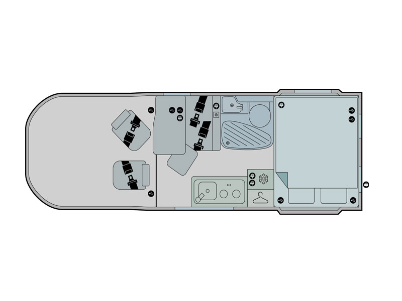 - Front lounge with twin dedicated rear travel seats, including 3-point seatbelts and one ISOFIX fitting