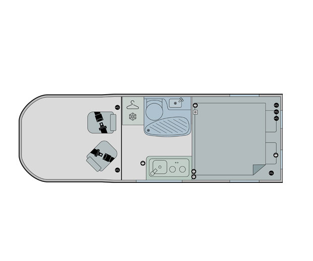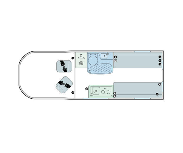 - Front lounge with twin dedicated rear travel seats, including 3-point seatbelts and one ISOFIX fitting