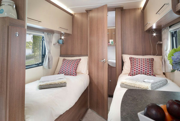 - Fixed double beds with aluminium frames and gas strut assisted opening mechanism
