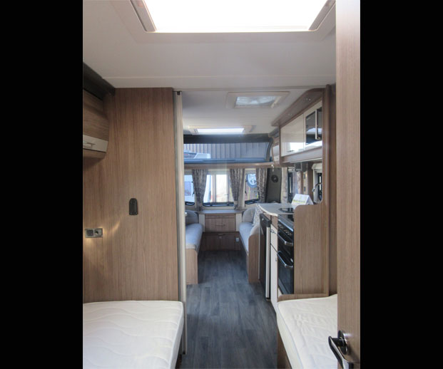 This 4 berth caravan boasts a excellent level of build quality and the highest of specification. This 4 berth single axle model has a spacious front living area which converts into a front double, fully functioning modern centre kitchen, two fixed single beds and a rear washroom that hosts a separate shower. The interior is crammed full of specification with the likes of the Alde heating system, Microwave, loose fit carpets, CD/Radio and so much more.