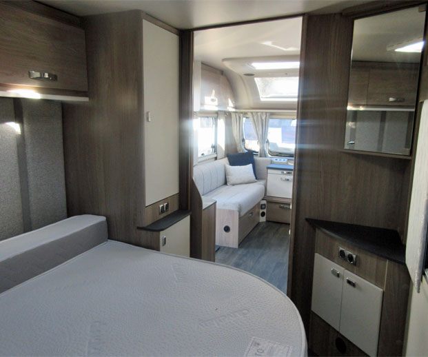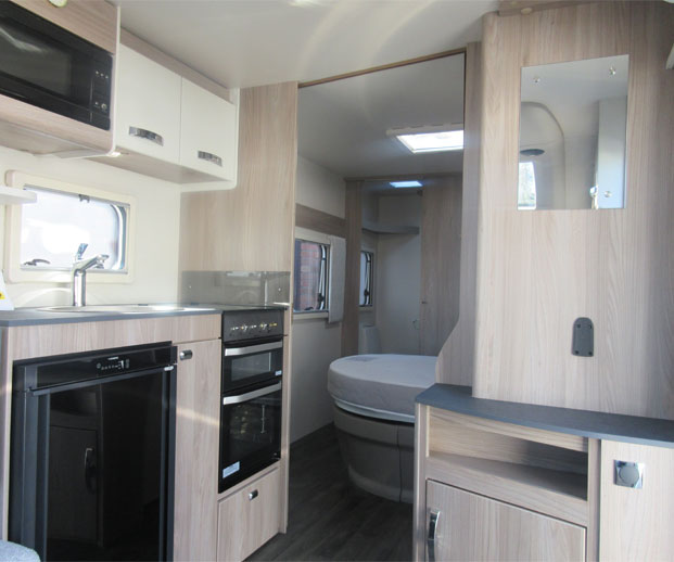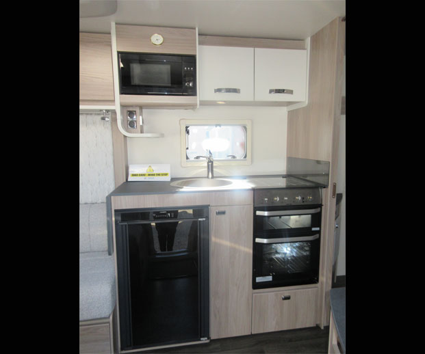 This 4 berth single axle caravan offers a great level of build quality and specification. This fixed bed model has a spacious front living area that converts into a front double, fully functioning modern centre kitchen, comfortable fixed island bed and a practical rear washroom that hosts a separate shower. The interior is crammed full of specification with the likes of the Truma Blown Air heating system, Microwave, loose fit carpets and a CD/Radio and much more