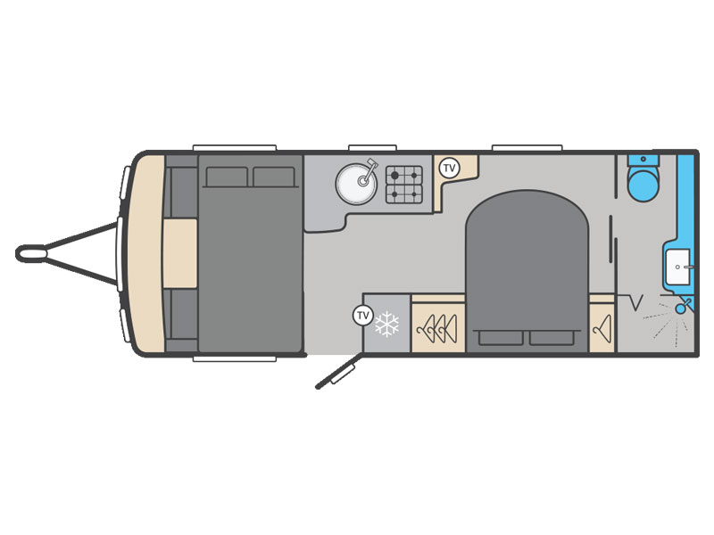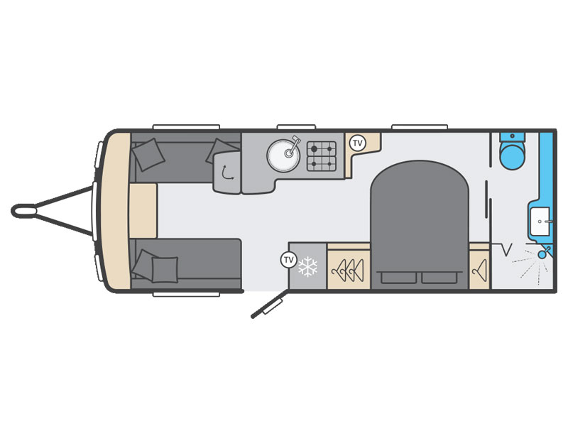 The 580 is a spacious transverse island bed single axle model with large rear washroom