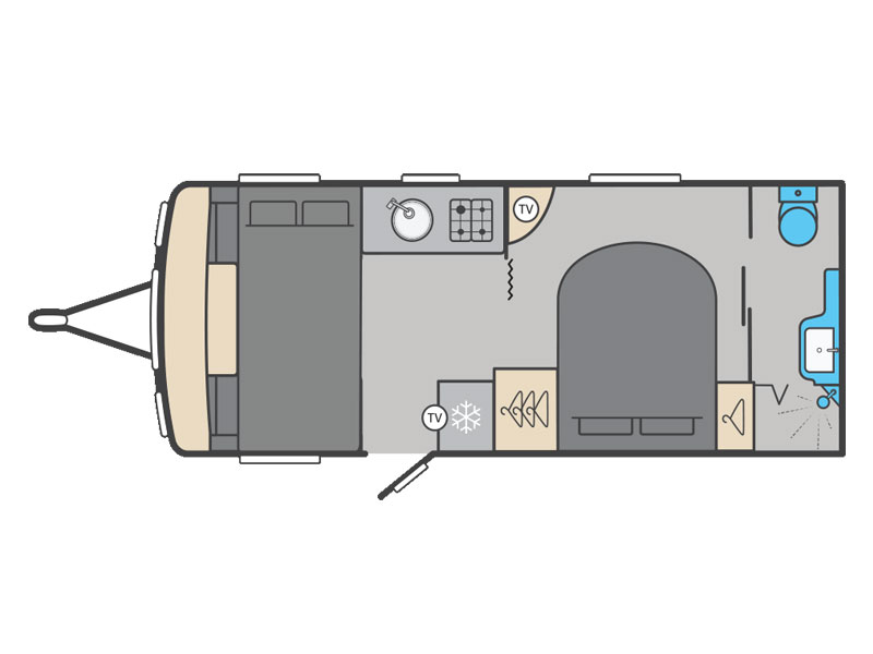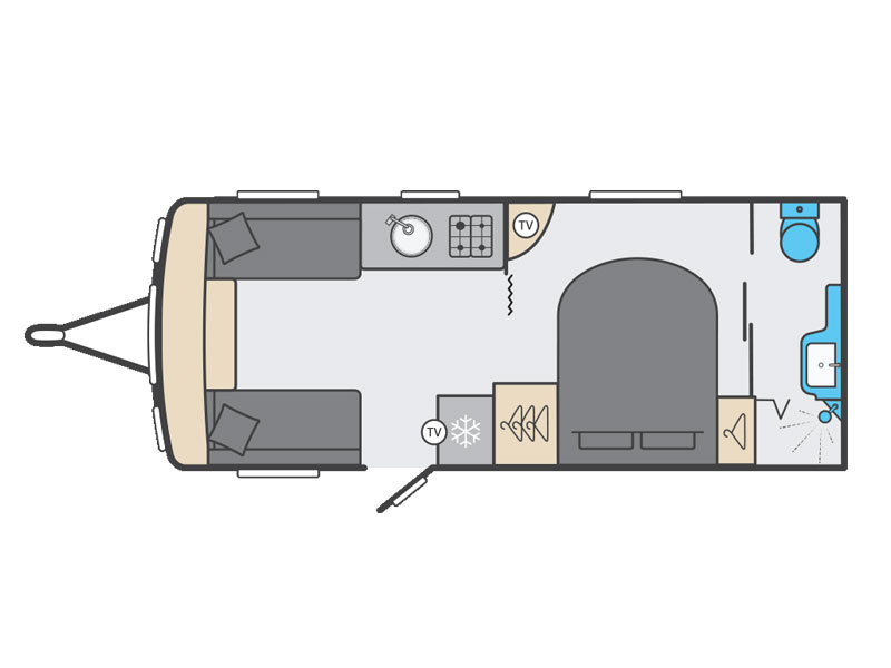 - TV point with 230V, 12V and aerial sockets (two on twin axles)