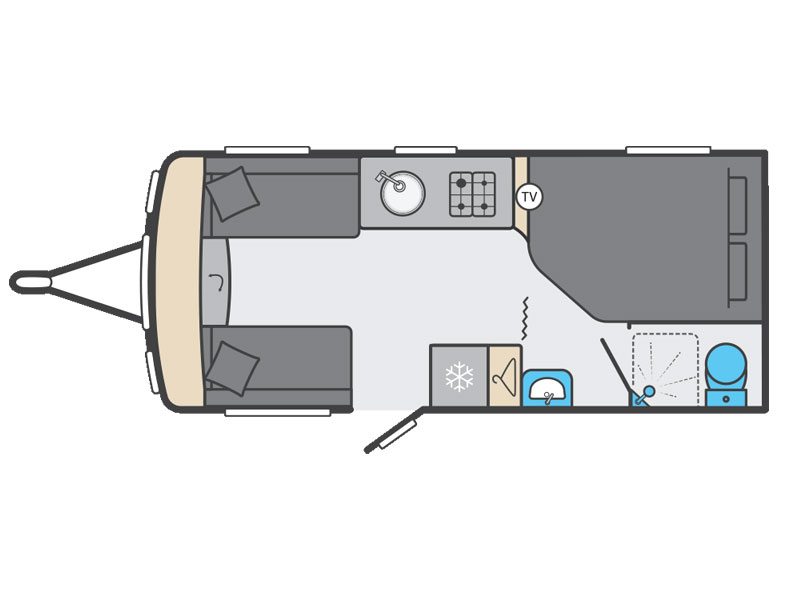 - TV point with 230V, 12V and aerial sockets (two on twin axles)