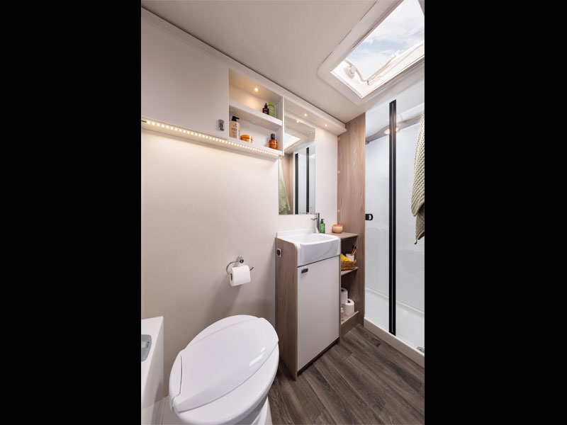 - Dedicated shower with bi-fold door and travel lock (except Alpine 4 and Major 4 EB)