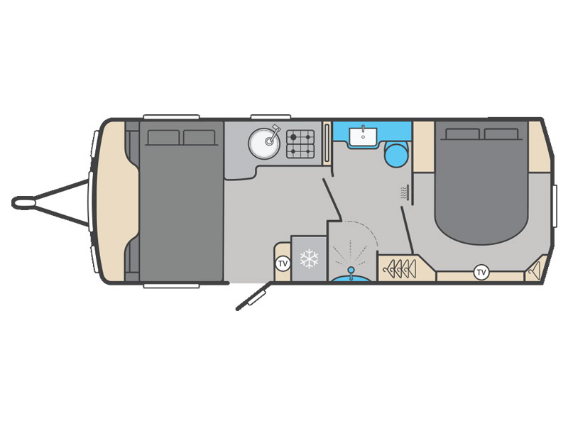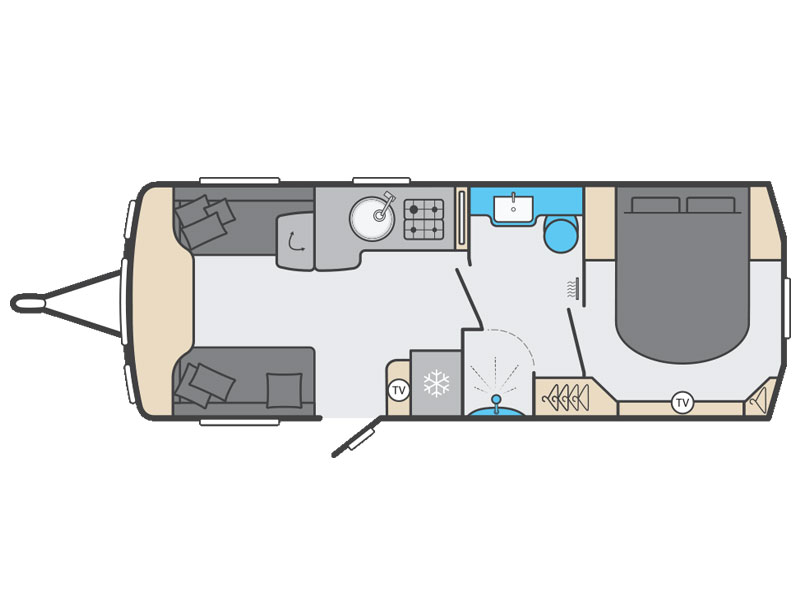The 835 is a twin axle 8ft wide rear transverse island bed model, with large centre washroom and spacious front lounge.